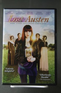 One of my new favorite movies is Lost in Austen. We rented it from Netflix and fell in love with it. I watched it twice and sent it back to them and immediately ordered our own copy from Amazon. The story is about a modern day girl, Amanda Price, who has a surprise visit from Elizabeth Bennet who has come through, of all places, Amanda’s bathroom wall into modern day London. Amanda and Elizabeth swap places and Amanda ends up in the Bennet house. The movie is a unique twist on the original story. I love some of the twists and enjoyed how we learn alternate perspectives on the Bennets and their acquaintances.