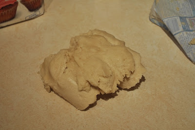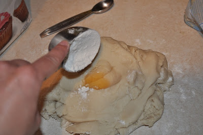 Knead dough with flour, adding in 2 parts, and brandy extract.