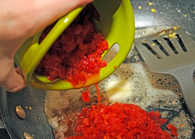 - 1/2 cup finely chopped red bell peppers – I used roasted red bell peppers from a jar.