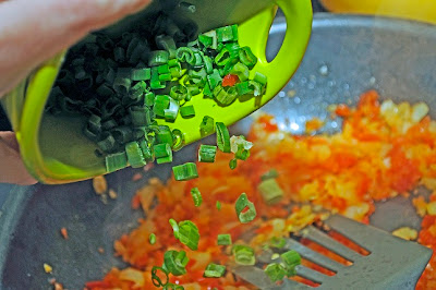 Add the green onions, jalapeno, and garlic and cook, stirring, for 2 minutes, or until the vegetables are softened.